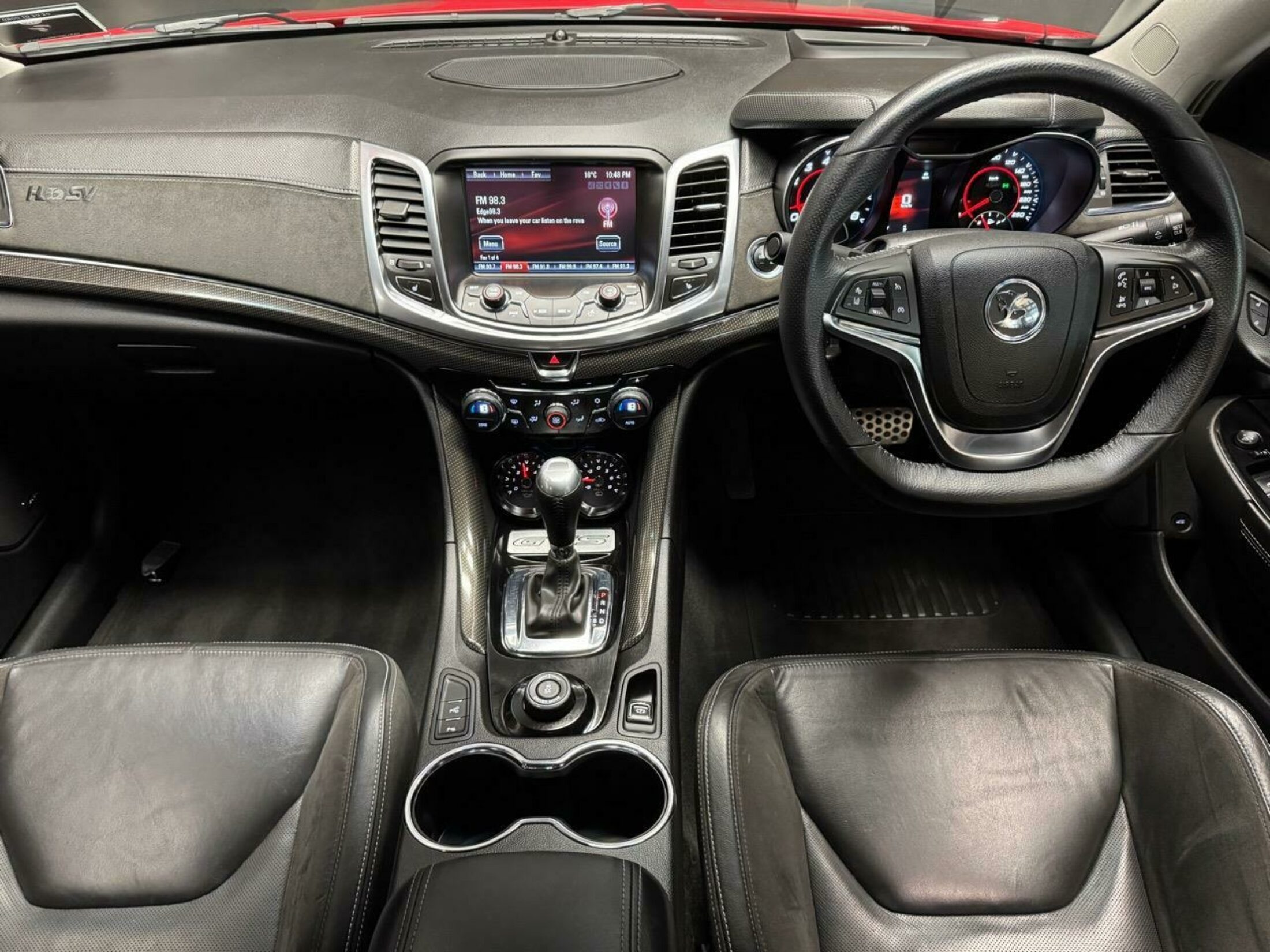 Inside: premium Onyx leather, HSV performance seats, dual-zone climate, touchscreen with Bluetooth, and Head-Up Display. Safety is sorted with rear camera, stability control, and multiple airbags.