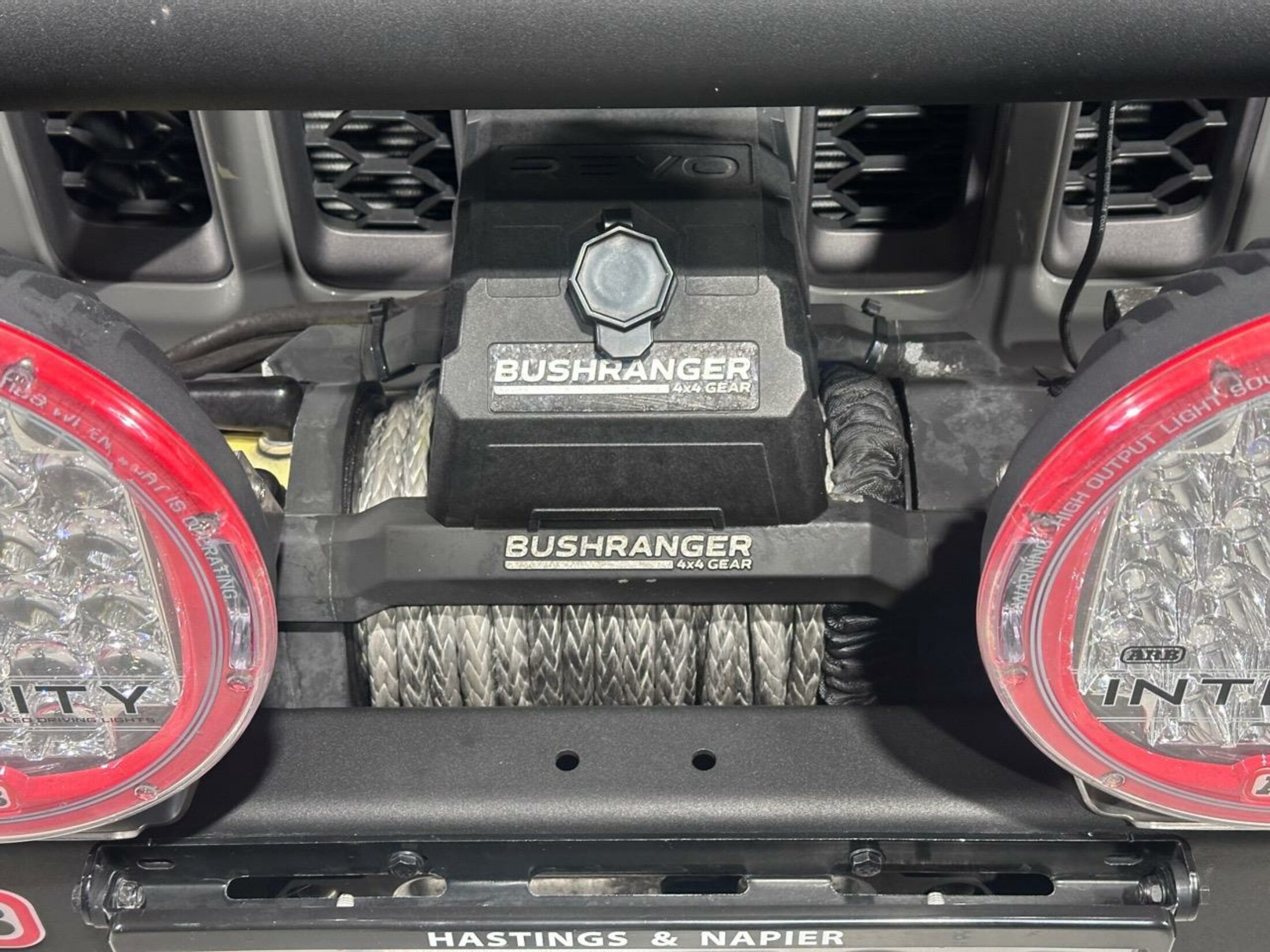- Bushranger 4x4 Gear Winch Revo 10s (rated line pull 4,536 kg)