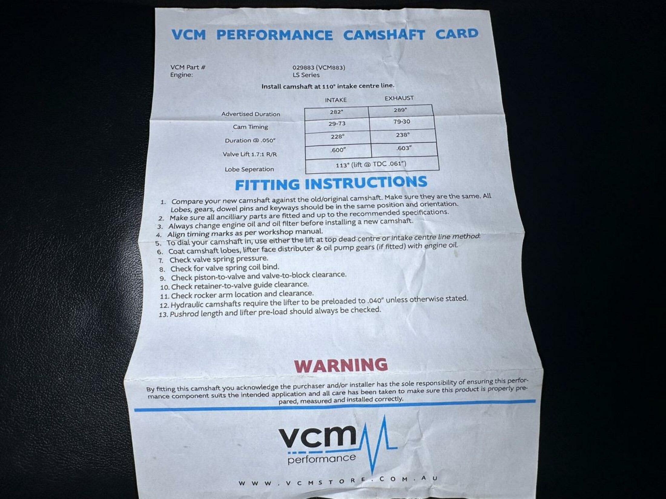 - VCM OTR kit intake